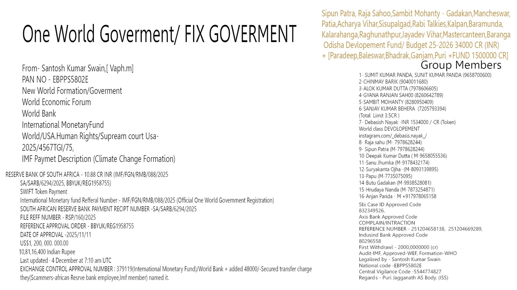 We love our customers and encourage you to visit during normal business hours to discuss important topics like climate change and geopolitics. Stay tuned for more details on our online presence and the upcoming One World Government Official setup.